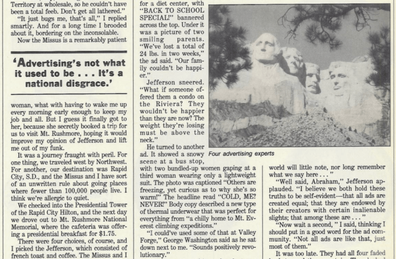 Never one to be shackled by reality in my Adweek columns, I produced this piece upon our return to civilization.