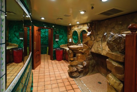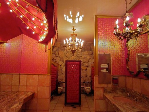 First, the Madonna Inn has nothing to do with either religion or the pop star. Not sure where the name came from but the hotel interiors were not to be believed. Seemingly designed by someone on an acid trip – like the clashing neon colored everything in the restaurant – the place is actually renown for its hallucinogenic public bathrooms, including “the ever-popular motion activated waterfall urinal.”