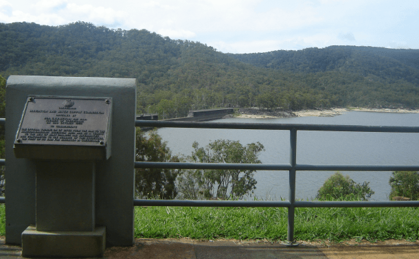 Not to mention the source of a visual pun: I took a photo (lost, alas, to history) of the Missus standing in front of the dam and holding up a little toy kangaroo.