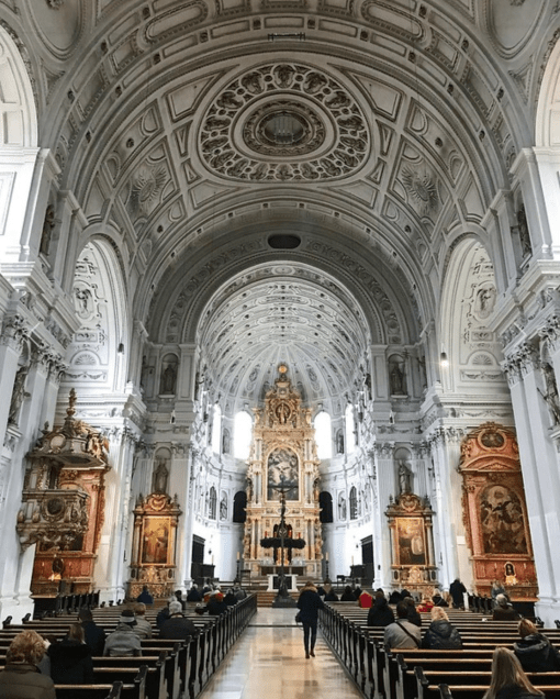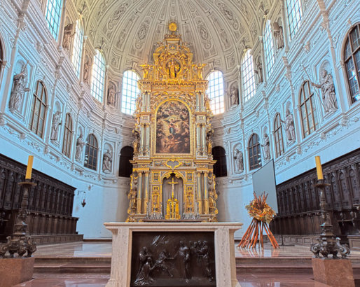 The church was built by William V, Duke of Bavaria between 1583 and 1597 as a spiritual center for the Counter Reformation. In order to realise his ambitious plans for the church and the adjoining college, Duke William had 87 houses in the best location pulled down, ignoring the protests of the citizens.