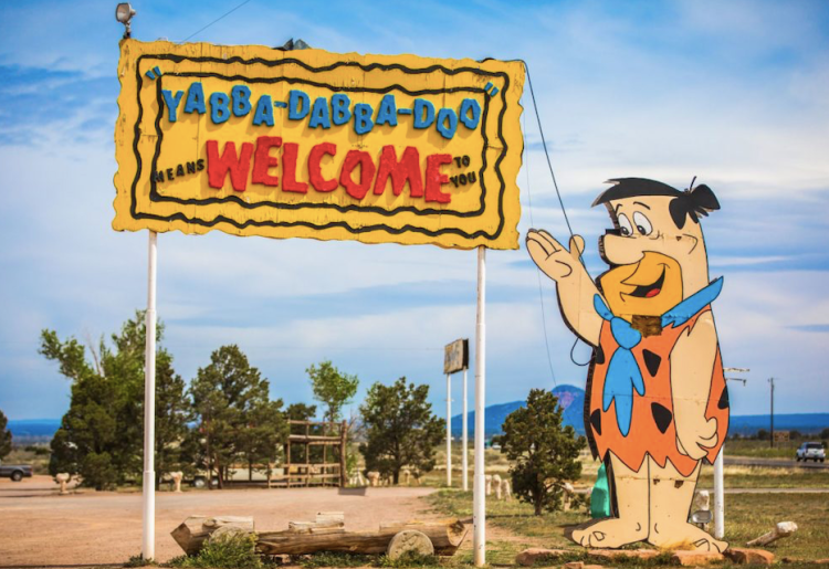 About hallway between Sedona and Grand Canyon National Park, the Missus and I rumbled into Bedrock City, the purported home of The Flintstones and the longtime home of Raptor Ranch, a tourist trap that can’t even spell its own catchphrase correctly. The current headline on Raptor Ranch’s website is “Yabadabaoo [sic]! Come and Celebrate 50 Years of Iconic Bedrock City,” although they did get the Yabbas right on their sign along the highway.