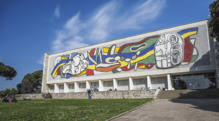 Wartime bombing destroyed the building in 1945. Its reconstruction, completed in 1955, was financed by taxes, contributions, and U.S. Marshall Plan aid.