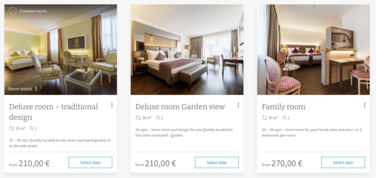 This family-run, 4-star superior hotel has a long tradition, and yet is in tune with modern times.They’ve also goosed up their room rates quite a bit. (Fifty-five dollars in 1990 equals $130 now, while 210 euros now equals $221, for those of you keeping score at home.)