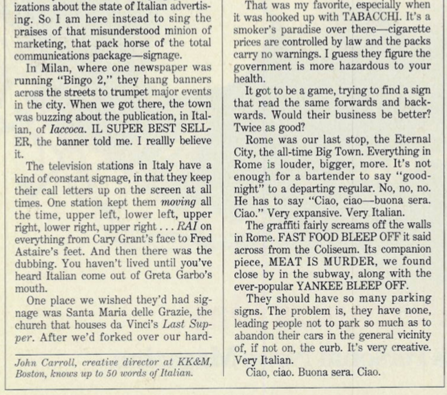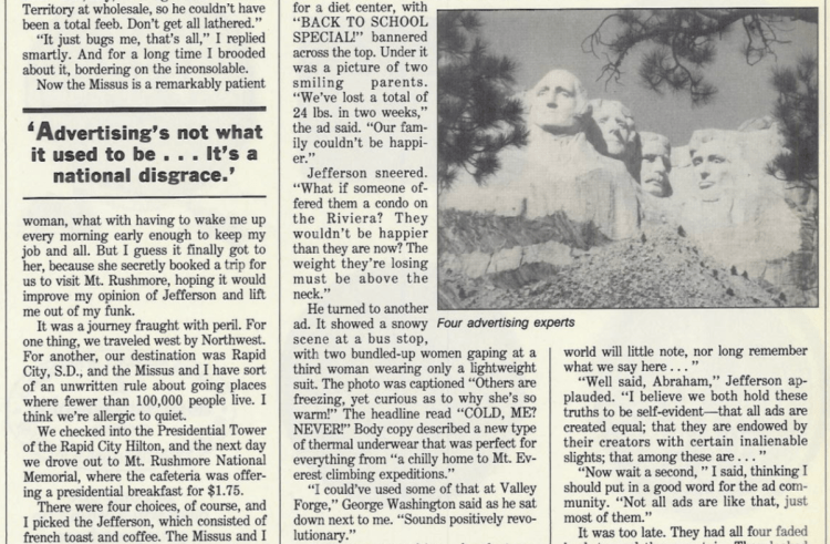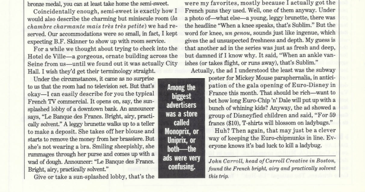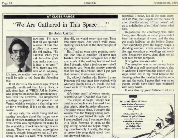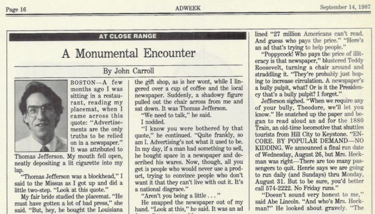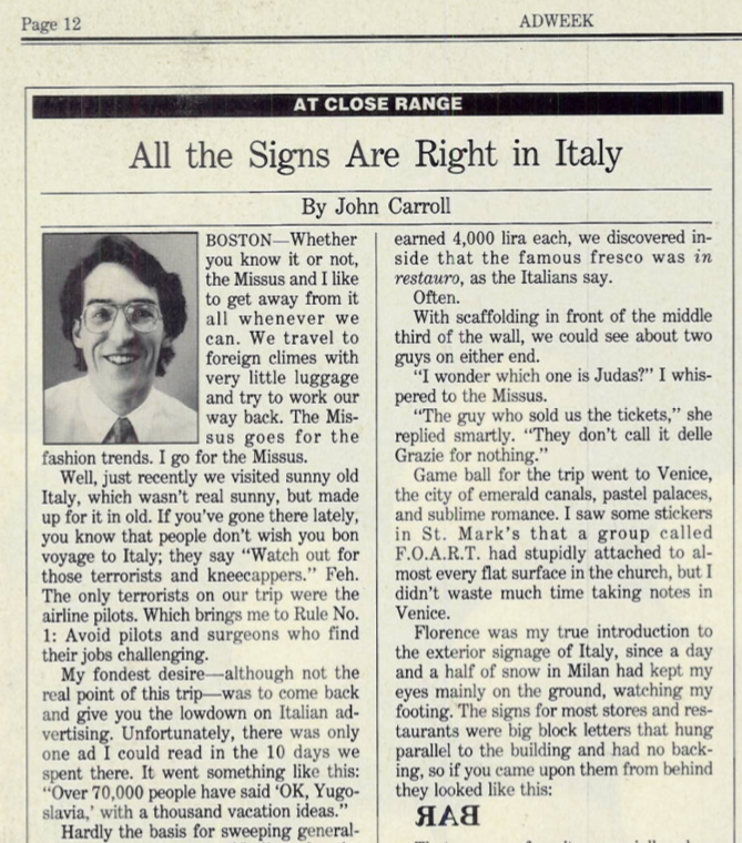 In the mid-1980s I worked my way into writing regular columns for Adweek, which I produced from 1986 to 1994. (Details about how that came to pass here.)